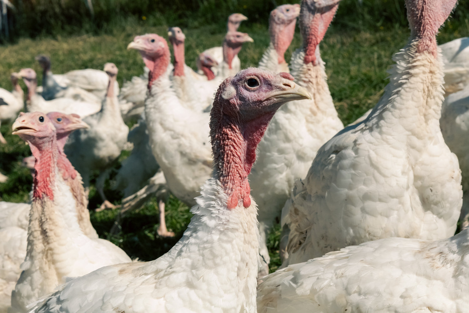 Die Truten haben wie die Hühner viel Platz im Stall, Auslauf und Weide. Sie fressen das gleiche Futter wie die Mastpoulets.