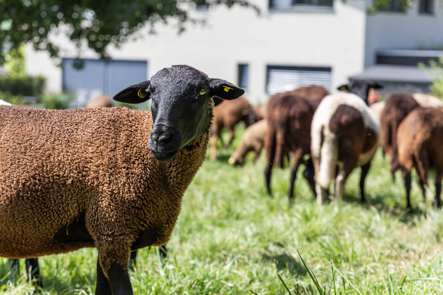 Die Schafherde umfasst 15 Mutterschafe mit deren Nachwuchs.Ein stämiger Schafsbock sorgt für Jungtiere.
