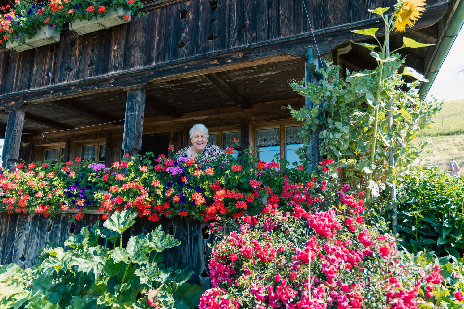 Elisabeth Blaser-Gerber, geboren am 12. Januar 1946, hat mitgeholfen den Biobetrieb aufzubauen. Nach dem ihr Mann, Johann Blaser, verstorben war, hat sie ihren Sohn bei der Betriebsführung unterstützt. Auch heute hilft sie noch tatkräftig auf dem Hof mit.